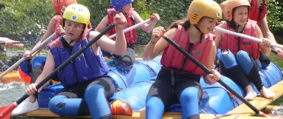 | Leistungen: Outdoortrainer, Floßbauequipment, geeignet ab der 6. Jahrgangsstufe, bei einer Fahrt auf der Iller ab der 9. Klasse, Voraussetzung: Schwimmer | ||